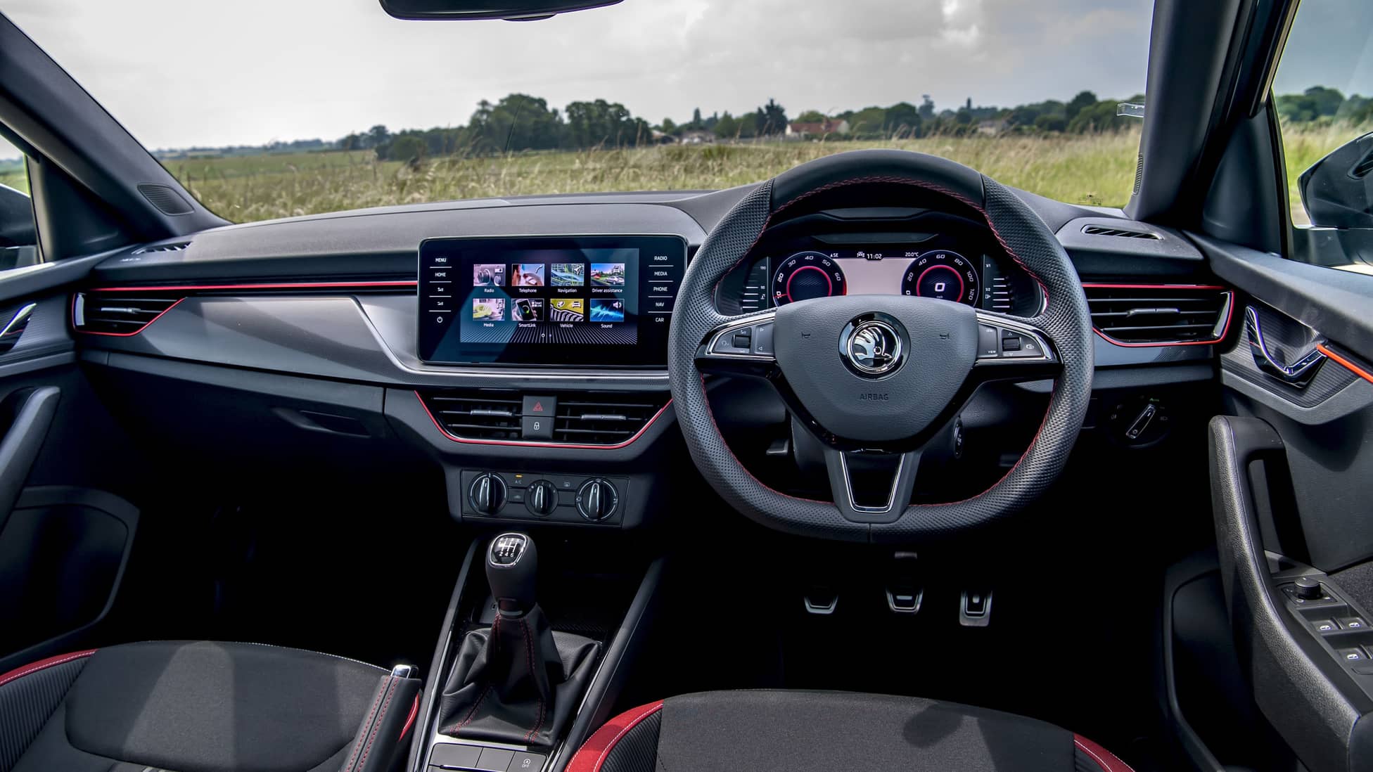 Skoda Scala'nın iç mekanında malzeme kalitesi açısından karışık bir tablo görüyoruz. Torpidosu oldukça yumuşak bir malzemeyle kaplanmışken, kapıların alt kısımları ve vitesin bulunduğu alan daha sert bir plastikle kaplanmış. Ancak yine de fiyatına göre tatmin edici bir iç mekan sunuyor.